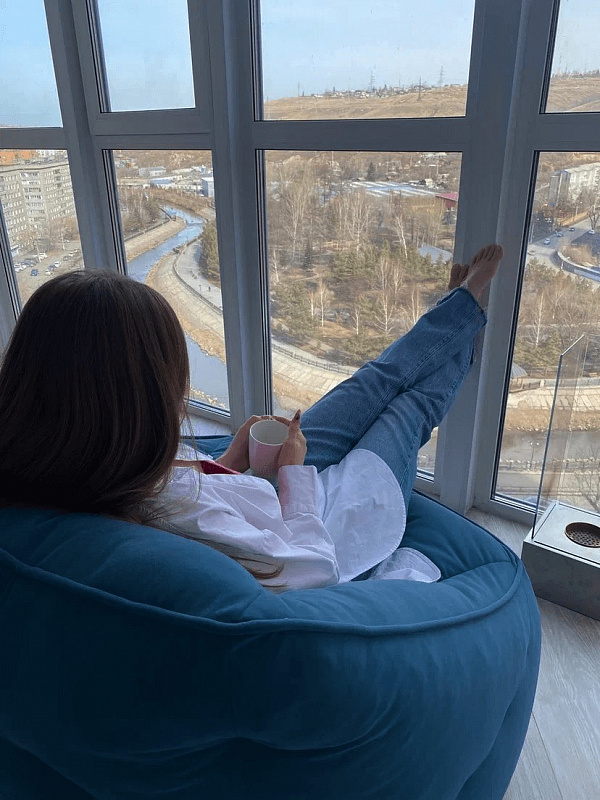 Бескаркасное кресло, с высоким и мягким посадочным местом